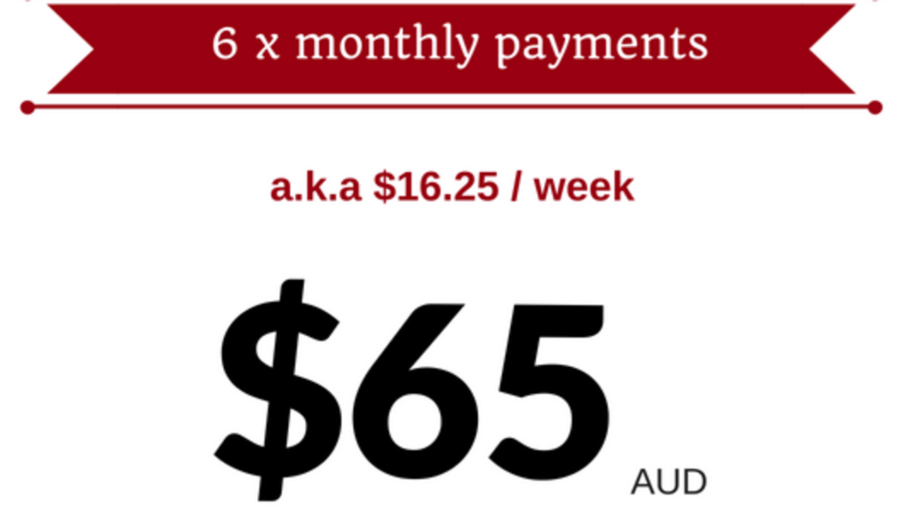 6 monthly payments of $65.00 AUD